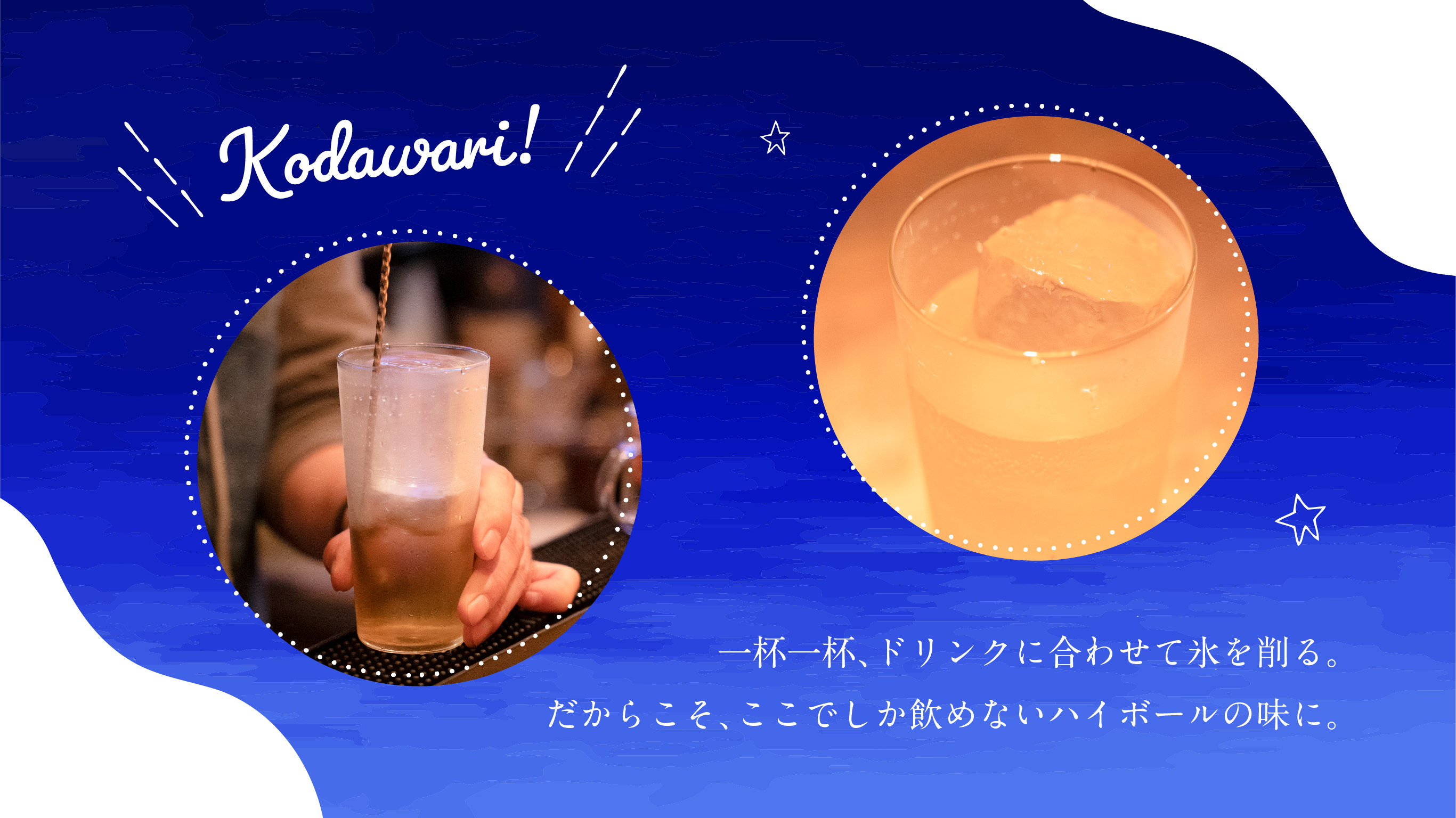 基本的にソーダとウイスキーしか使わないハイボールだからこそ、些末な部分にまで氷にこだわる。水とアルコールが溶け合うことで起きる化学反応を氷を介して調整する。用いるウイスキーによって氷の表面をざらつかせたり、ものによっては小さめにしたりと、ひとつひとつ氷をその腕前で形作ることによって、ここにしかない味わいになっている。